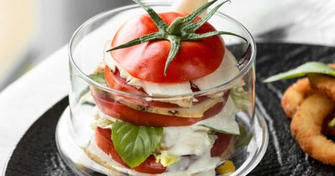 Un tiramisu salé qui fait danser les tomates et la burrata