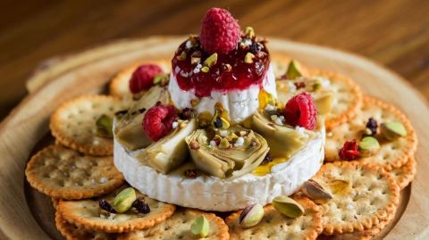 Une pyramide de chèvre à l'artichaut et framboises