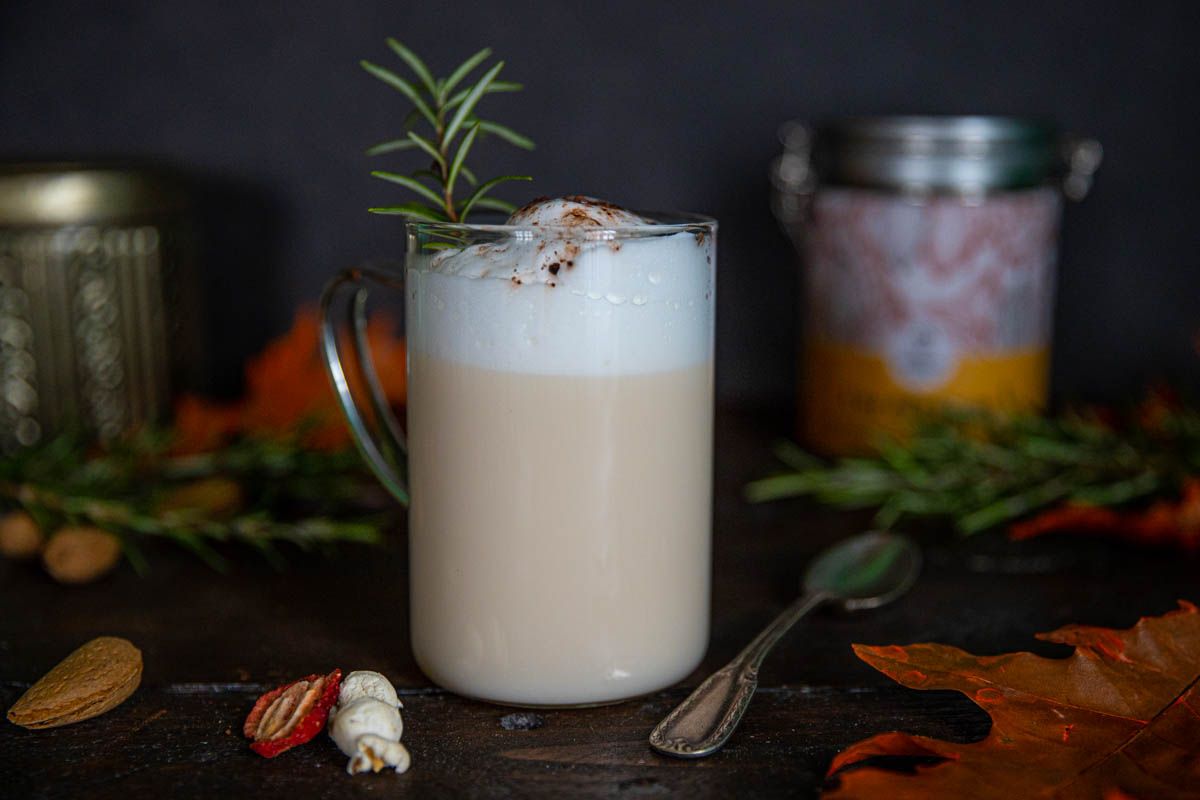 - Préparation : Infusez la tisane dans l’eau, puis filtrez et ajoutez le sucre. Faites chauffer le lait d’amandes et moussez-le avant de le mélanger à la tisane.