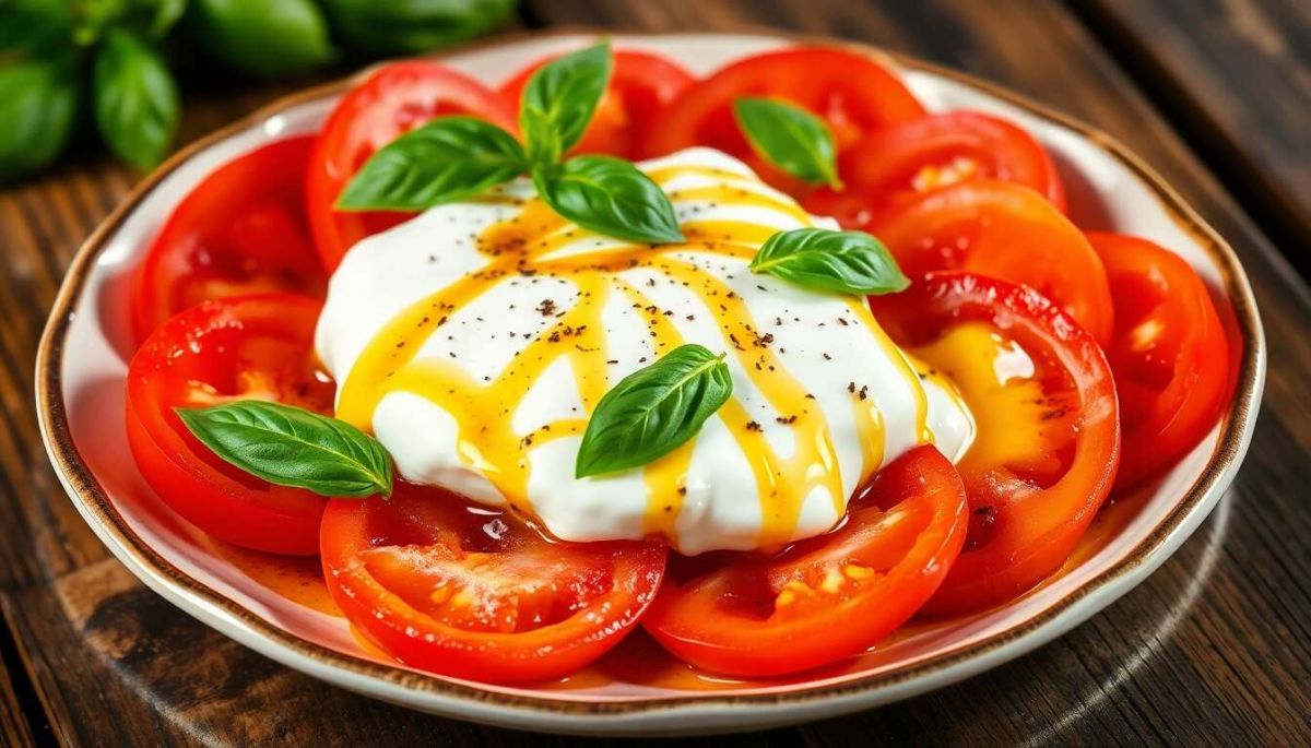 La salade de tomates à la burrata représente l'essence même d'un plat léger et savoureux. Elle met en avant des ingrédients de qualité, tout en évitant de les masquer. Avec une touche d'huile d'olive et quelques feuilles de basilic frais, ce plat constitue une entrée parfaite pour séduire vos convives.