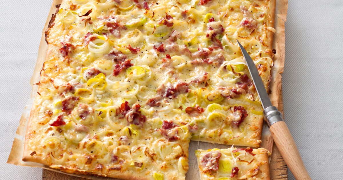 La flammekueche, ou tarte flambée, est un plat traditionnel d'Alsace. Dans cette version moderne, nous ajoutons de délicieux poireaux fondants, de la coppa aromatique et un emmental fondant qui ravira les amateurs de fromage.