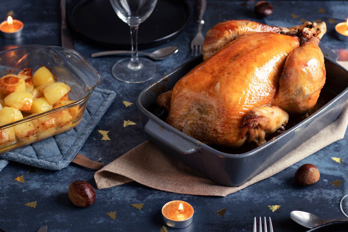 Pour vérifier la cuisson, insérez la sonde du thermomètre dans la cuisse sans toucher l'os ; le jus doit être clair.