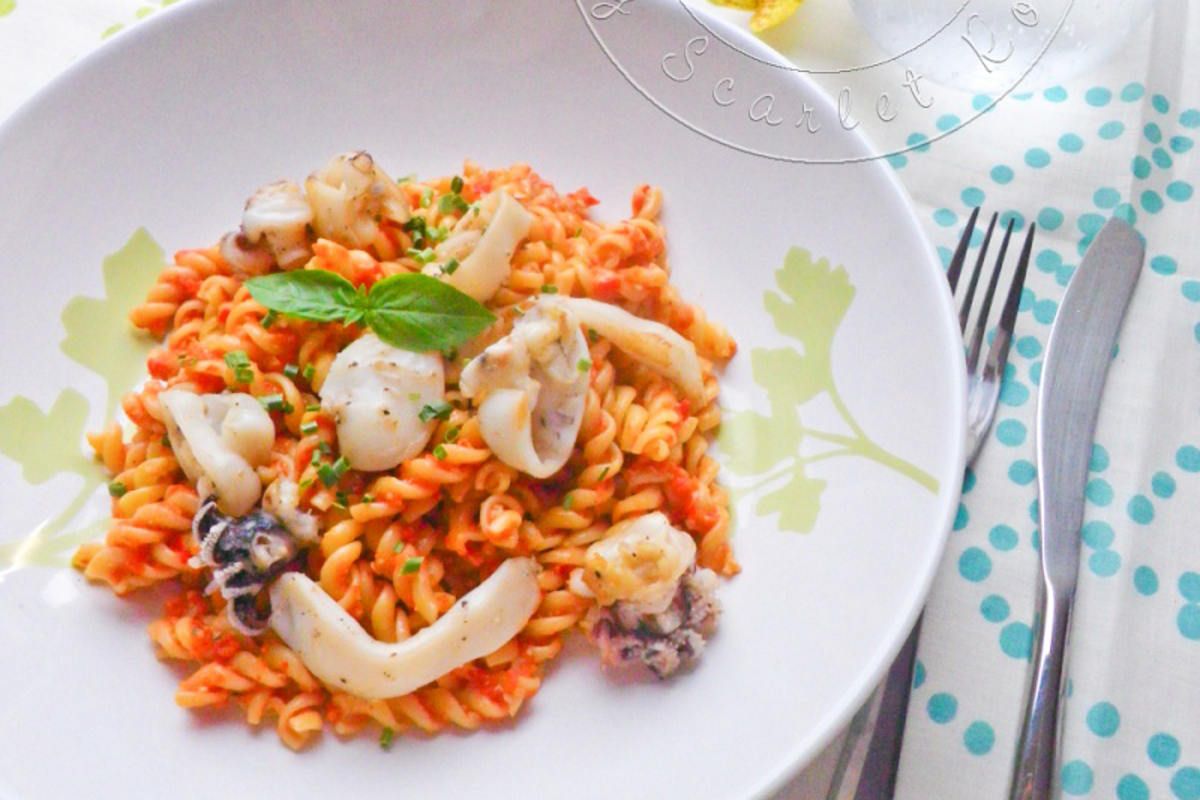 Salade de pâtes aux seiches grillées et pesto de poivron