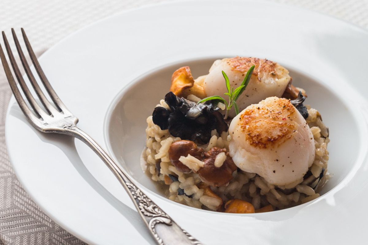 Aujourd'hui, laissez-vous séduire par une recette alliant terre et mer : un risotto crémeux aux champignons forestiers et des noix de Saint-Jacques fondantes. Parmi mes champignons favoris, j'ai sélectionné les girolles, les trompettes de la mort et les chanterelles pour apporter une richesse de saveurs à ce plat raffiné.