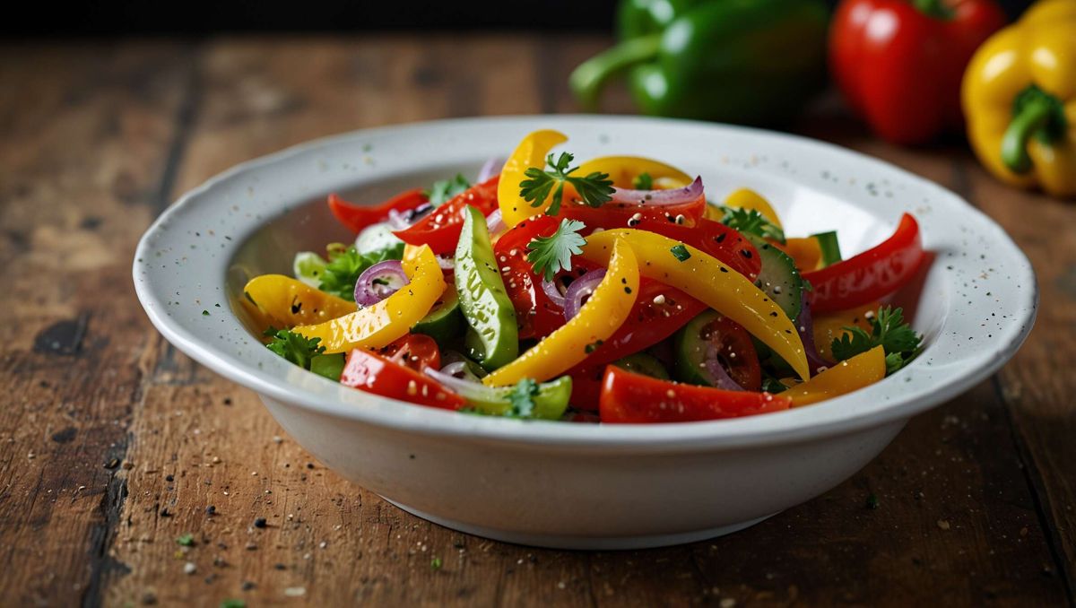 Ajoutez de la vitalité à vos repas avec cette salade aux trois poivrons. Facile à préparer, ce plat savoureux est un concentré de vitamines et de couleurs, idéal pour vos barbecues ou comme entrée estivale.