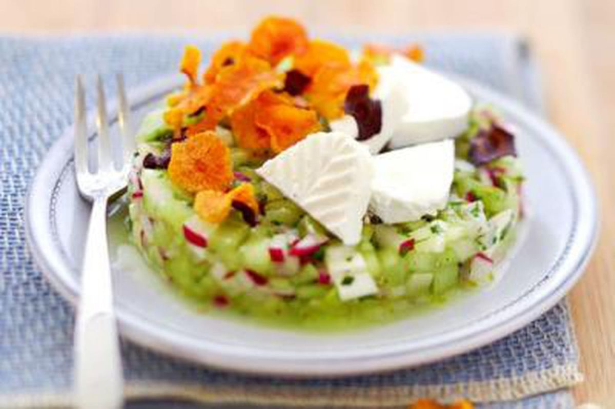 - Épluchez le concombre et découpez-le selon vos préférences (lanières, rondelles ou cubes).