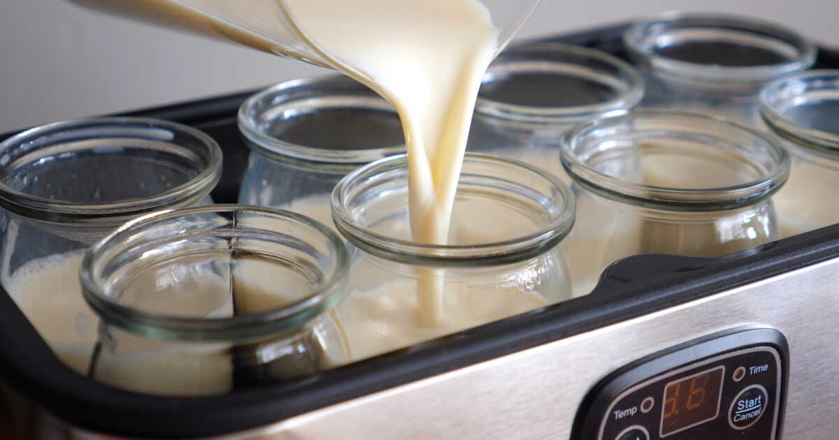 - Utilisez un entonnoir pour remplir les pots de yaourt, puis placez-les dans la yaourtière.